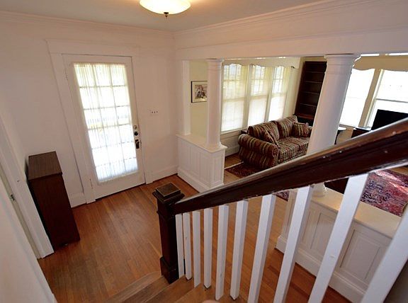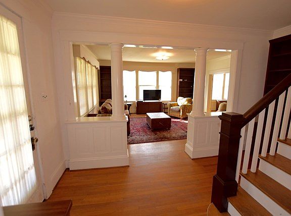 Grand Craftsman home in a great neighborhood in Crewe. This classic 4 bedroom, 3 bath home features many upscale accents. Stately columns and built-in glass cabinetry divide the entry hall and living room. French doors, coffered ceilings, wainscoting and built-in china cabinets create and elegant formal dining room. The galley kitchen features ample, custom cabinetry and all of the necessary appliances. The downstairs master features a newly renovated master bathroom and this room is easily converted into a den or extra living space. The upstairs features a master bedroom and master bath and 2 more spacious bedrooms and a large full bath. The 2 bay, metal work shop with electricity and wood stove gives you over 700 sq ft of work or play space. Many recent improvements have been made but this home is still an excellent canvas for your own creative and contemporary upgrades. Make plans to see it today.