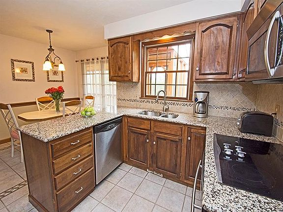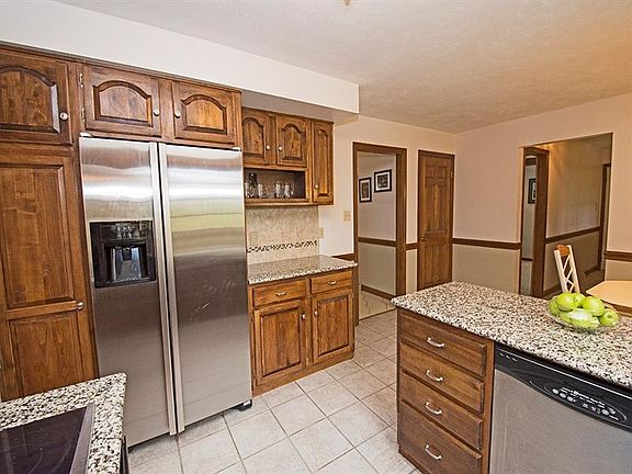 Beautiful setting! and very spacious home with large entry. Lovely eat-in kitchen with granite, ss appliance, tile back splash, ceramic tile floors. Covered and screened in deck with 2 sky lights is off kitchen with beautiful views. Laundry off kitchen, formal living room, relaxing family room with wood beams and french doors. Master bedroom is large and bright with en-suite. 3 additional bedrooms are great size with nice closet space. The lower level will please those who like to entertain with a large bar, wine ref, 2 rooms for relaxing and full bath. The game room has walk out access to a resort like oasis with covered patio, heated pool, hot tub and gazebo for those who desire a relaxing or entertaining lifestyle. Interior french drain, invisible fence and attic space over attached garage. Home is on a dead end street. Close to hospital, shopping and RT 51 and 43.
