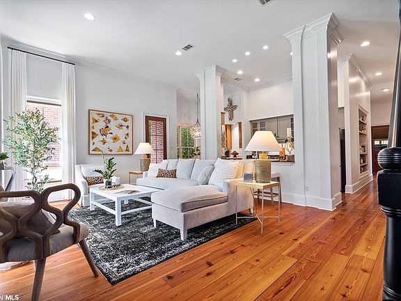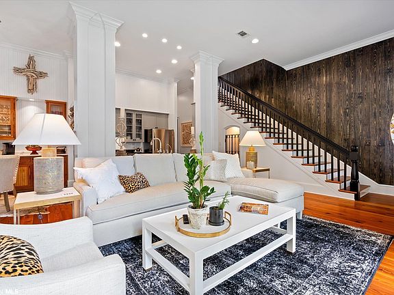 RARE OPPORTUNITY! DOWNTOWN FAIRHOPE This private, peaceful 3 unit Condominium offers upscale design with low maintenance living!! Outdoor spaces include a front porch for socializing, a balcony that overlooking giant oak trees and a private courtyard for grilling and gardening. Primary bedroom suite down, 2 bedrooms up with shared bath plus a spacious 2nd living space up that's surrounded by windows! Elevator shaft for future elevator if desired. Enjoy designer updates throughout! Many custom features include spectacular reclaimed wood plank flooring, built in desk & bookcases, wine room, designer chandeliers & window coverings, coffee bar, wet bar, sprinkler system, 2 car garage with storage. Washer, Dryer and Refrigerator to remain with home. Designer upscale furnishings negotiable. A MUST SEE!