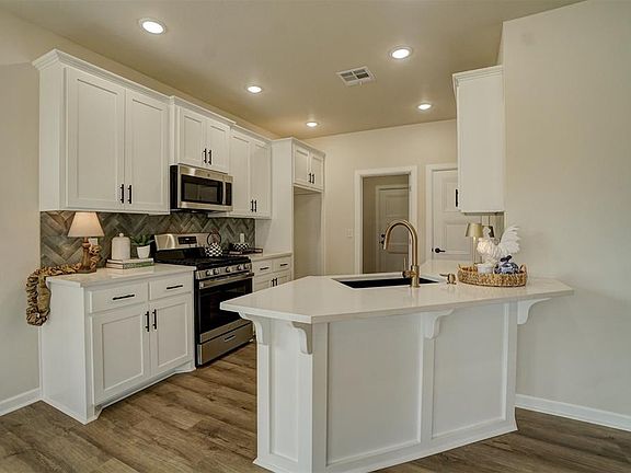 Spring Builder Incentive! $12,000 towards buyer's choice of upgrades or seller paid closing cost. Upgrade options are fence, storm shelter, appliance package, etc. Stunning new construction home, featuring 4 beds/2 baths, designed in a modern craftsman style. From the moment you step inside, you'll be captivated by the bright, open spaces and luxurious finishes. Beautiful white kitchen, equipped with quartz countertops, gas cooktop, & stainless steel appliances. Black granite single bowl sink with a stunning champagne gold faucet. The kitchen also features a pantry and a convenient breakfast bar. Adjacent to the kitchen, the laundry/mud room offers practicality with its black built-in bench with drawers and additional built-in cabinets. Living room has a cozy corner fireplace, overlooks a huge covered patio, providing the perfect space for indoor-outdoor living.Modern wood luxury vinyl plank (LVP) flooring runs seamlessly through all living areas, enhancing the sense of luxury and providing a cohesive design.