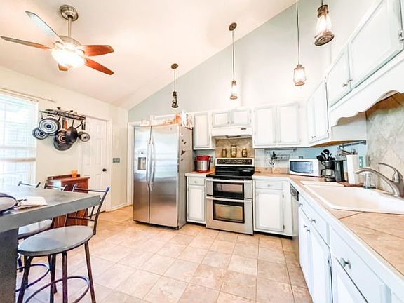 Spacious 4 bedrooms and 2 full bathrooms home on 0.47 of an acre, located on a Cul-de-sac! As you walk through the front door, you are welcomed by laminate wood floors that run throughout the home and high vaulted ceilings in the Living and Kitchen areas. The living room boasts a gas log fireplace and open views of the kitchen with ample counter and cabinet space, updated lighting and a walk in pantry. Off the kitchen there is a bedroom and mudroom, upstairs is another room that could be a 5th bedroom, office, workout space! Owner's Suite is located downstairs with outside access, giving a great view of your spacious backyard, vaulted ceilings, en suite and walk in closet! Off the living dining area is a screened porch and patio overlooking the back yard with wooded buffer for privacy.