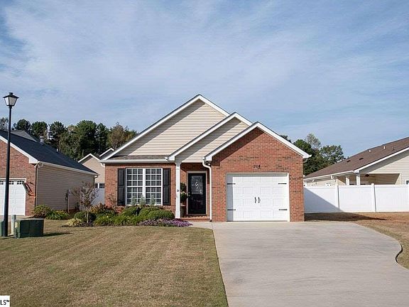 Welcome home to a one-level maintenance free lifestyle. Beautiful two bedroom, two bathroom home with an open floor plan and vaulted ceilings. The kitchen has custom glazed cabinetry with a breakfast bar. The master bedroom has a garden tub, separate shower, and a walk in closet with built in's. The sun room is cozy and it has a lot of natural light. Outside you will find stunning landscaping and a private fenced backyard. Wait till you see all of the blooms in the spring. Conveniently located close to shopping, restaurants, and only a 15 minute drive to downtown Greenville. Make your appointment to see this gorgeous home today.