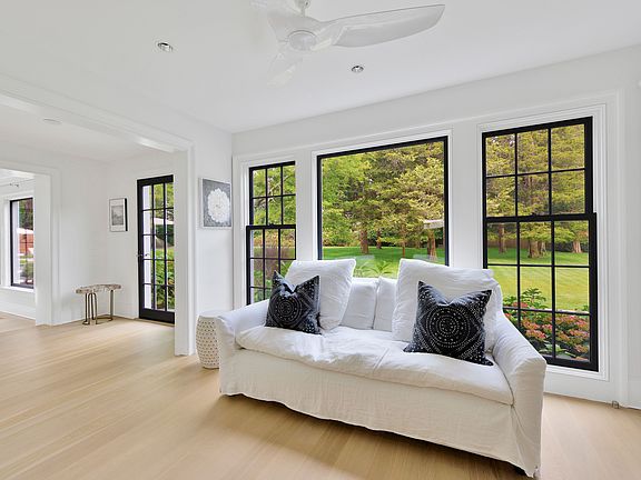 Take advantage of this opportunity to own a magnificent newly renovated home with an ideal East Hampton south of the highway address. 204 Pantigo Road, with 4 en suite bedrooms, 5 full baths and 1 half bath on a lush 1.45 of an acre, will "WOW" you at first sight. Perfectly positioned down a deep gated flag lot, you will be close to all East Hampton village has to offer with its pristine ocean beaches, superior shopping and restaurants. The recent custom renovation created an floor plan that includes many floor to ceiling glass doors and full view windows giving you unobstructed views of the outdoors while letting in tons of natural light. The first floor has an inviting entryway, living room with wood burning fireplace, large professional grade galley kitchen, dining area and separate TV/office space with another cozy fireplace and bar. Both the living room and dining area have extended India Madras hardscape to make outdoor entertaining a breeze. The second level boasts 3 en-suite bedrooms, one of two laundry areas and an elegant primary suite, with vaulted ceiling, generous walk-in closet and a stunning marble bathroom and outstanding views of the property. There are an additional 1000 SF of living space in the lower level, to include: a TV/gathering space, full bath, built in storage areas, wine refrigerator and an extra oversized side-by-side frig/freezer unit plus a separate outside entry. Relax and enjoy the heated 44x18 gunite pool, and the added bonus of a deluxe shed and a super cool outdoor shower. The perimeter of this hidden gem is composed of mature plant specimens and is accentuated by professional exterior lighting, creating a magical experience. Be the one to own this sophisticated East Hampton retreat.