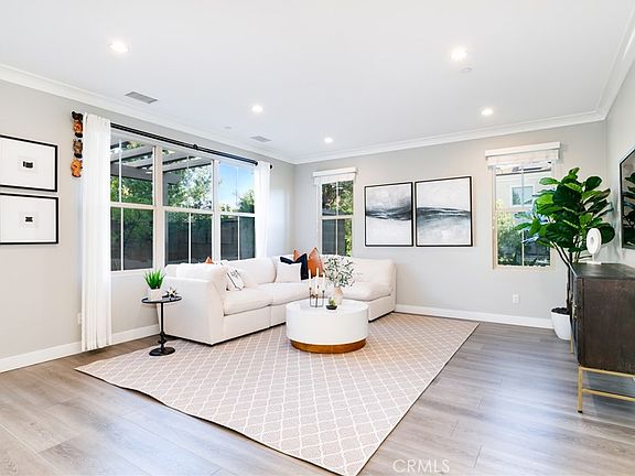 This house has a large and Open Great Room that flows into the spacious gourmet kitchen with over sized Island and Butlers Pantry. The kitchen features upgraded stainless steel appliances including a 6 burner stove top, granite counter tops and back-splash. Custom drapes and wood blinds through out. Upgraded marble counter tops in all bathrooms and laundry room. The backyard is complete with pavers, arbor patio cover. Excellent HOA Amenities including parks, pools and trails all with a low HOA fee.