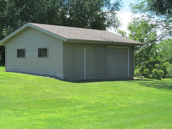Spacious walk-out Ranch with cathedral ceiling and open concept connecting living room, dining and kitchen. The main floor offers 1700 Sqft, 3 bedrooms, master suite has double vanity and dressing room separate from master bath and large walk-in closet. Main floor laundry has utility sink and features a second full size refrigerator. The lower level is finished adding 1698 SqFt., 2 additional bedrooms, full bath, family room and den. Large storage closet and "freezer room" that has utility sink and lots of additional storage. 2-car attached garage with additional detached shop and shed in backyard, gives plenty of space for a "Man Cave". Shop is equipped with 220 and shed has electric garage door opener with enough space to store riding mower, boat, camper or hobby car. Deck off of dining area has steps that lead to backyard. Cemented lower level patio has side table built in for serving area or table top grill. Giving you a combination of 453 SqFt of extra outdoor living. Large open yard has an invisible fence. This home sits next to an open corner lot; you are only adjoined to a neighbor on one side. It is conveniently located in walking distance to East Dubuque High School and Junior High and Dunleith Park, pool, and tennis courts. Just minutes away from the Elementary School. Move in ready.