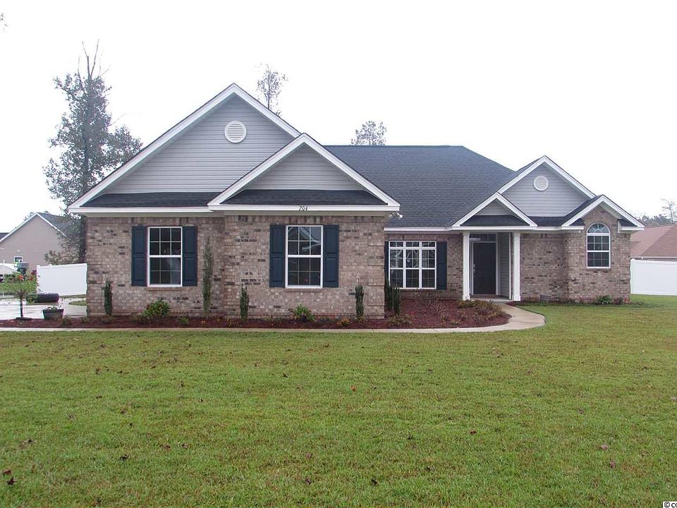 If you are looking for a great quiet little neighborhood close to everything that Conway and Myrtle Beach has to offer? Put this hidden gem on your list. This Flagship, Sally model home is only a year old and in great shape. Brick front, split three bedroom floor plan with two full baths. All the homes in the neighborhood have side entry garages. Gives the neighborhood a great look when driving through. Trey ceilings in master bedroom and formal dining room. Vaulted ceilings in living and family rooms. Family room is also wired with surround sound in the walls and ceilings. Laundry room right off of garage. So come right in and take your shoes off and no more tracking dirt and mud through your home. Home owner has also added extra cabinets and counter top in laundry room for extra storage and folding area. Hardwood flooring in entryway and and dining room. The back yard is fully fence in, so let the kids and the animals run. All homes in the neighborhood sit on BIG lots, so your neighbor is not right on top of you. There is a 14 acre lake in the neighborhood also, so nature is only a few steps away. Come see your future home.