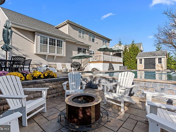 Welcome home to this beautiful 4 bedroom, 2.5 bathroom brick-front colonial home in Pennridge school district. This home offers great curb appeal with an inviting front porch that overlooks open space and the community playground in the distance. This house is move-in ready and boasts a welcoming, open floor plan. The two-story main foyer is bright and greets you with a wood staircase, wainscoting, a coat closet and lots of natural light entering through the large picture window. Hardwood flooring is found throughout the entire main level of this home. To your right there is a bonus room with glass French doors, which would make a great office space or an exercise room. To your left, you will find a formal living room with large front facing windows, wainscoting and crown molding that flows seamlessly into the dining room with tray ceiling and windows overlooking the backyard. Just off the dining room is the gourmet kitchen with modern subway tile backsplash, farmhouse sink, granite countertops, island with an overhang for stools and a pantry closet. The kitchen also offers stainless steel appliances including a new dishwasher (2025), propane cooktop, soft close doors and drawers, recessed lighting, under cabinet lighting and a reverse osmosis system for the kitchen sink and refrigerator water (2024). A breakfast nook with skylight lets in lots of natural light and a glass door leads to the remarkable outdoor space. Located next to the breakfast nook is the great room with vaulted ceiling, recessed lights, hardwood floors (2021) and a floor-to-ceiling stone propane fireplace. A modern powder room (remodeled 2024), a laundry room with mud sink, and a 2-car oversized garage with plenty of room for storage or a workbench, complete the main level of this house. Head upstairs to find 4 bedrooms and 2 additional bathrooms. The upstairs hallway has hardwood flooring and crown molding and offers a view down to the entry foyer. Double doors lead to the impressive master suite with luxury vinyl plank flooring (2024/2025), a tray ceiling with recessed lights, a sitting area (or additional office space) and two walk-in closets. It also offers a gorgeous ensuite bathroom with double sinks, a tiled stall shower and a soaking tub. 3 additional bedrooms are located on this level, all of which also have been updated with luxury vinyl plank flooring (2024/2025). Large windows are found in all bedrooms offering plenty of natural light. A full hall bathroom with tub shower and a hall linen closet complete the upper level of this house. Downstairs you will find a huge unfinished basement (approx. 1400 sq ft) which has plenty of room for storage. The basement offers high ceilings should you decide to finish this space. The backyard oasis (2020) is truly amazing and was designed with entertainment and relaxation in mind! This private backyard retreat is the true gem of the property. The Trex deck is the perfect place to relax and enjoy your space. The deck overlooks the fenced backyard, a gorgeous two-tier paver patio and a heated, saltwater, Gunite inground Anthony & Sylvan pool (2020). The pool is approximately 38 feet long and goes to a depth of 8 feet. Trees line both sides of the backyard which backs on to an open field for additional privacy. Just beyond the back fence is a yard with a swing set and gardening beds. There is also a maintenance free shed where you can store your lawn mower, gardening tools and pool supplies. This home also includes a whole house water softener system and carbon filter (2023) and a dual zone HVAC system to ensure that you are comfortable both upstairs and downstairs. This remarkable home has so much to offer and is located just minutes from downtown Dublin.