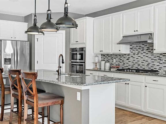 You will love living in this active 55+ community, with a 9-hole golf course, clubhouse, pool, tennis courts, fitness center, restaurant & fun planned community events/activities. HOA covers the yard & snow removal. This gorgeous display home is filled with luxuries, including 9' ceilings, whole house wireless speaker system, & beautiful wood trim finishes. The chef's kitchen features granite counters, breakfast bar island, butler's pantry, walk-in corner pantry, & stainless steel appliances, including a 5-burner gas stove, wall oven, beverage cooler & French door fridge. Main floor master suite has trey ceilings, walk-in closet & spa-like bath w/dual sinks & a doorless walk-in seated tile shower. Handy laundry room next door. On the opposite side of the main level is a home office & 2nd bedroom with a full bath. Upstairs is a spacious loft, the 3rd bedroom & another full bath perfect for guests. Covered patio & 3-car garage. Every convenience you need is nearby. See this beauty today!