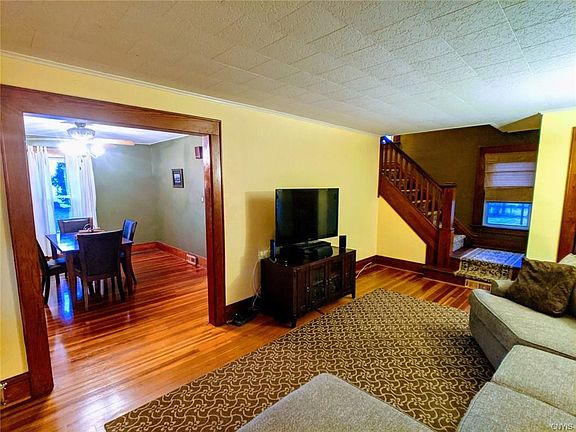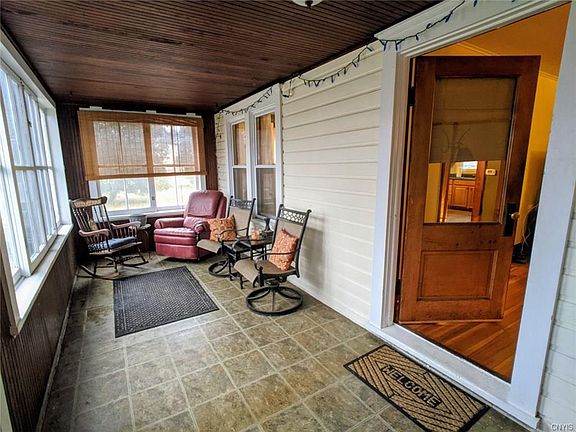 This wonderful Old Style home is located just outside the Village of North Syracuse. Entering the home you start on a spacious and comfortable enclosed porch. Entering the home you are greeted with Natural woodwork that is found throughout. The large formal Dining room is attached to a spacious Eat in kitchen with a ample amount of cabinet and counter space. All appliances stay! The living offers the perfect amount of space for relaxing and enjoying family and friends with a half bath on the first floor. Upstairs there is a huge full bathroom and Three comfortable bedrooms. Newer Windows, furnace, AC, and HW tank. Hardwoods have been refinished and attic re-insulated. Don't Forget to check out the huge backyard with a brick patio excellent for entertaining. Close to shops, highways, schools, and, restaurants.