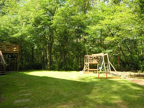 Set back, down a long driveway on a wooded, 1-acre lot, find this well-maintained, contemporary, 4-bedroom/ 3-bath split-level home, features cathedral ceilings, new oak floors, fireplace, central air, Jacuzzi, eat-in kitchen w/ skylight and breakfast bar, dining area with sliders to rear deck, master suite and an open floor plan. There is also a spacious, 2-car garage (undeneath) and a private back-yard bordered by lush woods/ conservation lands. All appliances are new and stay with house. Exterior and interior were recently painted. Close to major highways/ commuter rail and shopping. Storage shed. Call today to see it. 508-992-5552