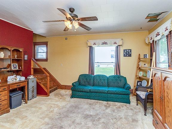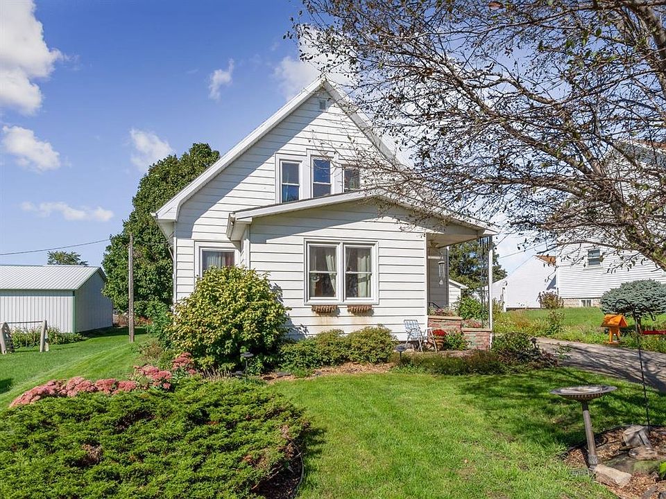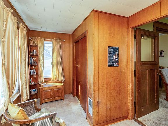 Solid 1 1/2 story in B'town Main level features front porch area with closet space and drop zone space, 1st floor bedroom off the living room, eat-in kitchen with plenty of cabinetry Family room at the back of the home with even more closet space and a free standing gas fireplace that will stay with the home. 1st floor laundry as well in the main level bathroom. Upstairs find the additional two bedrooms, hardwood flooring. Updated windows, newer roof, attached garage with newer garage door. Outside enjoy the concrete and paver patios on the backside of the home and extensive landscaping This home is ready for its new owner