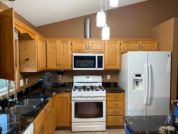3 BR 2 BA walk-out with a fenced in yard & storage shed. Open floor plan on upper level! Spacious LR, Kitchen and Dining combo with vaulted ceilings. Enjoy New Granite Counters in 2020, New Roof/Siding 2021, New Carpet in 2022, added enclosed lower level patio and wired it for a hot tub in 2019. Walk-out LL is finished with 3rd bedroom, large family area and3/4 bath, 3 car insulated & heated garage.