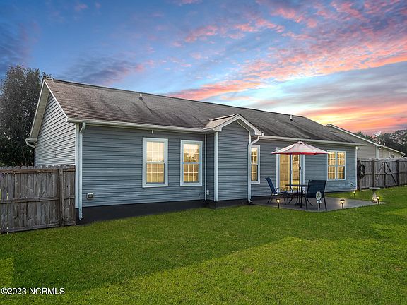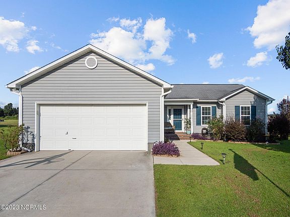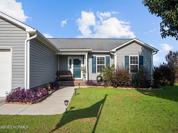 Nestled within the serene country neighborhood of Pebble Grove, close to area military bases, 204 Quarry Trail welcomes you home! Here, a charming abode awaits you free of city taxes or HOA! With an abundance of natural light for your plant babies, the spacious interior exudes an inviting and airy ambiance. Step through the front door, and your feet will meet the new plank-style flooring, a modern touch that adds both elegance and practicality. Look up to the high vaulted ceiling and notice the wide-open layout with bedrooms on either side. In the heart of the home, the kitchen boasts newer appliances, a large peninsula, and plenty of additional countertop space.