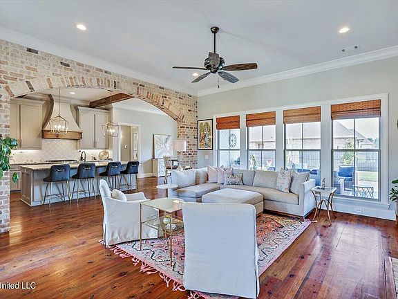 The kitchen features a 6 burner gas stove, and double ovens that have a wifi feature. All of the cabinets in the kitchen are ceiling height, giving you ample amounts of storage and space. There is also storage on the front of the kitchen island. The ceilings in the kitchen and the primary suite have beautiful stained wooden beams giving the entire home a beautiful aesthetic. There are beautiful hardwood floors throughout the entire home, as well as custom window treatments that were hand picked by a designer. The main living area of the home including the living, dining, and kitchen, let in so much natural light making it so inviting and welcoming. All of the bedrooms have an abundance of space and closet storage, 3 of the 4 closets are walk ins which is a huge plus.