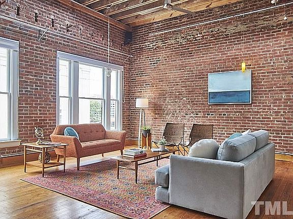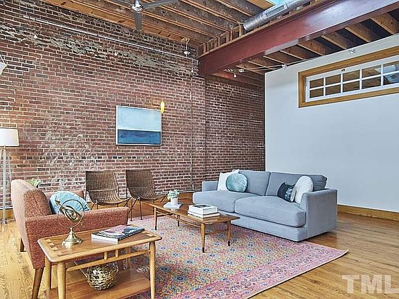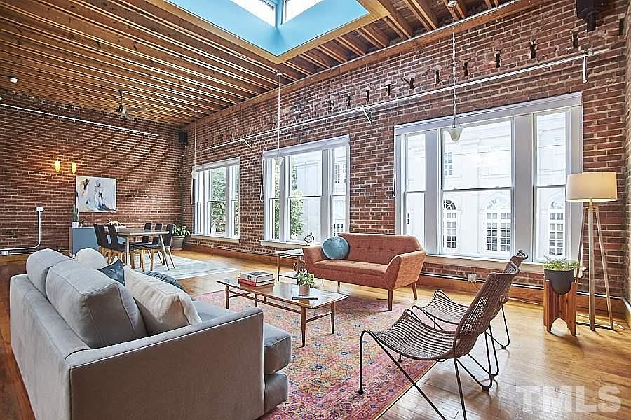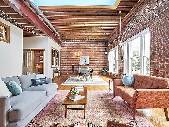 Perfectly placed on the 2nd flr of 204 Rigsbee lies this BOHO BEAUTY. Full of character & vintage soul, this urban loft pulls together exposed brick walls, original wood floors, oversized skylights & reclaimed architectural details like a master stylist. Soaring ceilings, enormous windows, front & back entrances all make for exciting layout possibilities + convenience prevails with a private storage room & parking for 2 cars in building's secure garage. This is a rare jewel set in the heart of downtown.