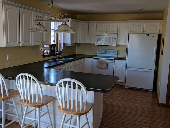 The house is a 2 story with a 2 car garage with a asphalt driveway. 3 bedrooms and 2 1/2 baths. The garage is a extra large 2 car. It allows for storage and park both cars. The floor is hardwood in the kitchen and dining room, carpet in the living space and bedrooms. Bathrooms and laundry are vinyl or laminate floor. 1/2 of the basement is storage space and the other half is refinished with laminate flooring for extra living space. Fair market value is 260,000. No realtor fees! So we have it priced to sell. Move in ready. All appliances included.