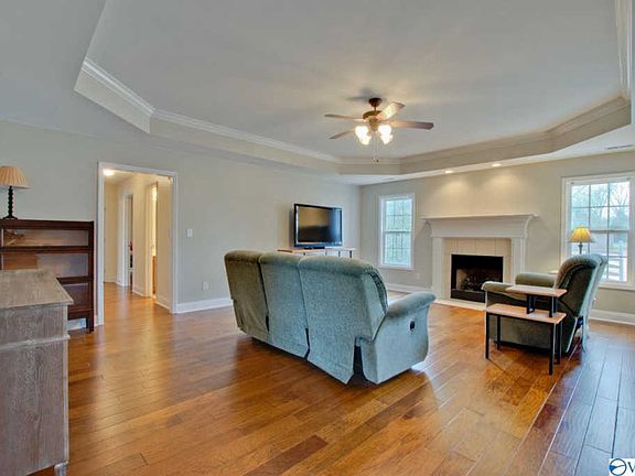 Beautiful brick home in the sought after Buckhorn school district. 4 bedroom, 2 bathrooms. Handscraped wood floors throughout the home. New paint in some of the rooms along with the ceilings smoothed. Kitchen has new appliances with plenty of cabinets, pantry and counter space. Family room features a trey ceiling with gas log fireplace. Isolated master suite with glamour bath featuring jetted tub, separate shower and large walk-in closet. Community pool, clubhouse, lake and nature area. Minutes to shopping. 15 minutes to downtown Huntsville and 20 minutes to Redstone Arsenal.