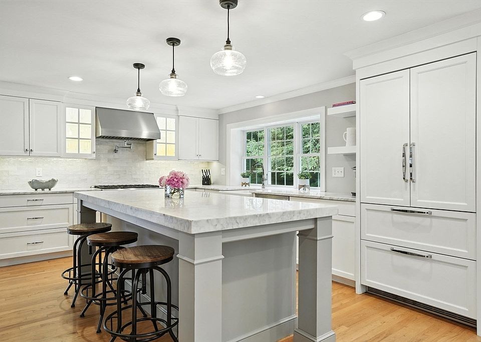 Welcome to 204 Riverside Drive! This beautiful Salt Box colonial is nestled in one of Norwell's most sought-after neighborhoods. The main level boasts multiple, open living areas bathed in sunlight creating ideal space for family time and entertaining. The first floor standout is the recently remodeled luxury kitchen complete with a dining area, high-end appliances, large island, built-in wine fridge, sleek marble countertops and a walk-in pantry with an inviting barn door. Head to the second floor and be greeted by four sizeable bedrooms and a primary en-suite bedroom with a newly renovated bathroom complete with a heated floor for added comfort. The lower level completes the living space with a media room/office beautifully accented with ship-lap walls and a large mudroom with custom built-ins. The breathtaking outdoor space features an expansive deck, lower level patio, built-in fire pit and a flat, tree-lined private yard that will impress all your guests! Welcome home!