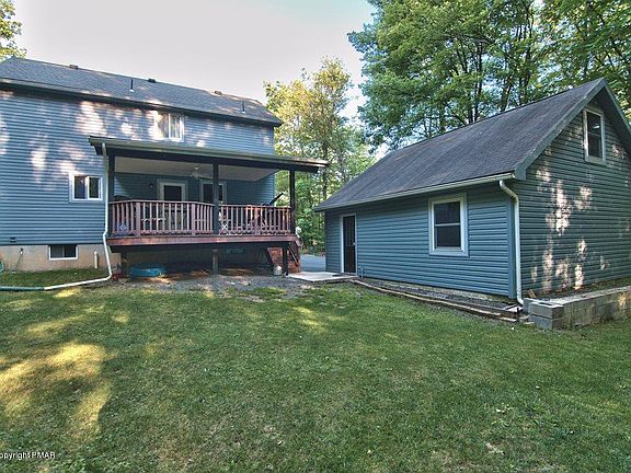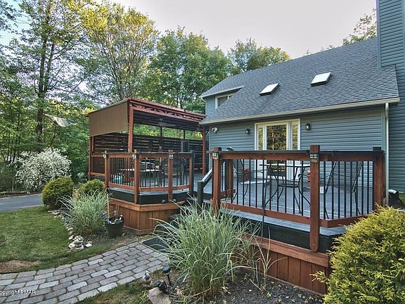 Home Sweet Home! Remodeled Saltbox 4Bed/3Bath inside and out. Custom Kitchen cabinetry with stainless steel appliances , Living Room with Fireplace and Skylights. Beautifully matured landscaping with stone paver walkway and covered porch to enjoy your summer nights. Paved Driveway leads to your oversized 2 car garage for plenty of storage. Set back and tucked away enjoy the Poconos seasons! Call to schedule your private tour!