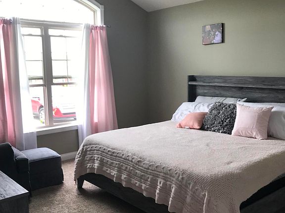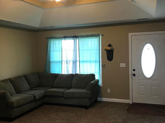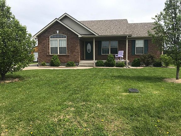 Very cute split bedroom home near town, or located for a great commute to Louisville. Beautiful vaulted tray ceiling in the living room, vaulted ceiling in the spacious master bedroom. Kitchen offers bar area for stools, and stainless kitchen appliance including stove, refr, DW, and microwave, nice area for your dining table. Both baths are tiled. Walk-in closet in master Bd. Large laundry room. 12x18 storage building w/loft. Chainlink fenced backyard. Beautiful landscaping w/concrete edging. Pool and pool equipment remain w/property.
