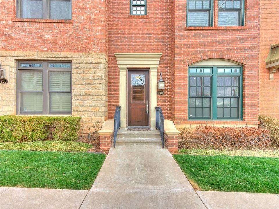Urban living at its finest! This incredible 2 bed/2.5 bath offers soaring ceilings, natural light, downtown skyline views, new hardwood floors throughout, granite counters, stainless steel appliances, custom closet in master, walkout balcony, second floor laundry. Full-size 2-car garage with shelving and storm shelter. Extremely efficient zoned geothermal HVAC. Second floor bedrooms each have walk-in closets. Additional second floor bonus space could be used for home office, overlooks private walk-out balcony. Second floor laundry saves time and energy! The HOA fee covers internet, cable, gas, waste services provided along with beautiful community pool & lounge area with outdoor kitchen, private gym, dog park, and much more! Seconds from I-235 makes this location ideal no matter where you frequent. Walk around the corner to your favorite restaurant or bar. See yourself relaxing & entertaining in this lovely Bricktown townhome.