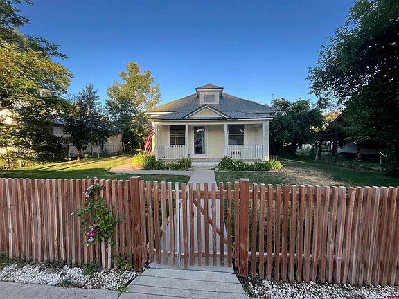 A unique find in downtown Dolores; a historic old victorian style home yet fully updated with modern conveniences, style and a gorgeous yard! Before you even walk in this home it has it all, beautiful mature and established flower beds, a fully- 6 foot tall fenced in front/back yard, a covered back patio, and a detached 2 car garage with alley access. The interior of the house includes 3 bedrooms / 2 bathrooms, with gorgeous original hardwood floors, modern lighting fixtures, stainless steel appliances, granite countertops and an abundance of storage space. This location is in the center and just two short blocks away from the Dolores River Brewery and the Dolores Market. In the spring, enjoy the sounds of the Dolores river from your patio or just steps away walk to the river trail and enjoy the local’s favorite swimming hole.