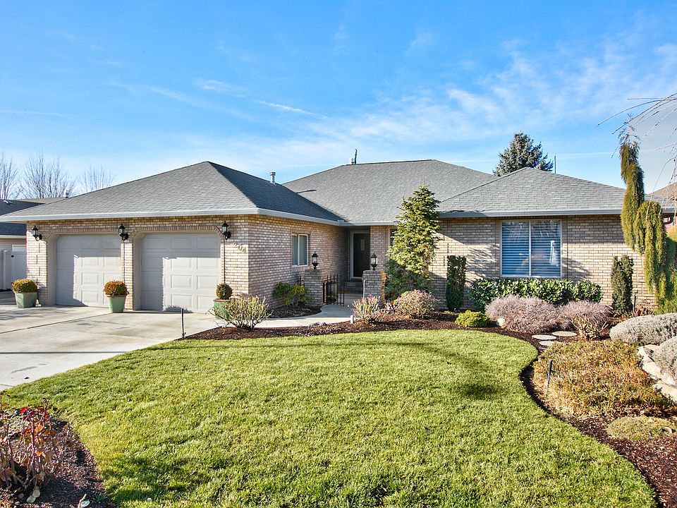 Delightful and well maintained single level home! Inviting spaces displays a double sided gas fireplace, vaulted ceilings. Light & Bright kitchen, granite countertops with a bay window over sink. Large master suite offering double closets & double vanity. Low maintenance brick exterior, fenced backyard, covered back patio. Includes a storage building with power & RV parking!