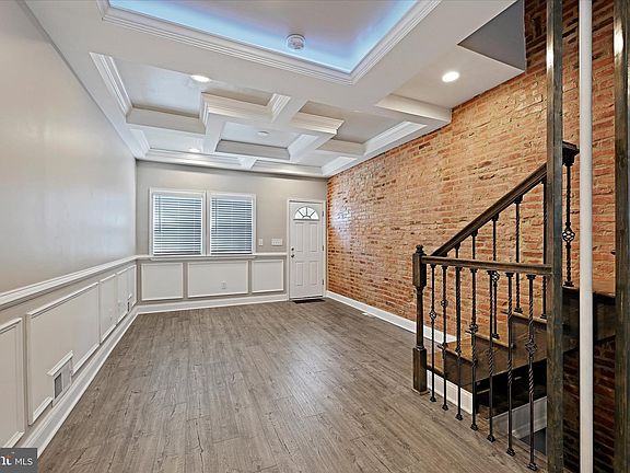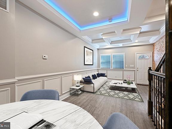 Must see to believe this high end renovation. This 3 bed/3.5 bath features luxury Vinyl Flooring, quartz countertops, stainless steel appliances, and crown and chair molding throughout. Designer handrail and staircase. Master bedroom w/ en-suite bath. Private parking pad. Check out the LED lighting in living room for the ultimate entertaining experience. All brand new systems and appliances. Property qualifies for multiple Baltimore City Grants!