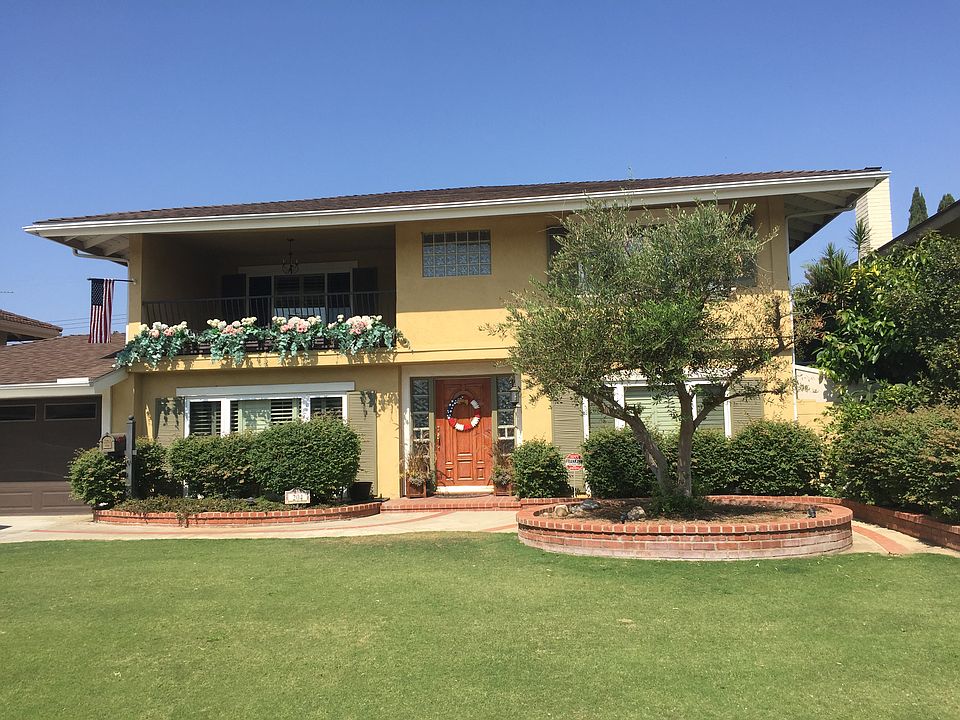 Welcome home to the hidden jewel of Orange. This unique property is ideal in location, upgrades and entertainment options. Gourmet chef’s kitchen with stainless steel appliances, custom walnut cabinets and gas range. Family room has built-in shelving and brick mantel fireplace. Separate living room and formal dining room. Convenient downstairs bedroom with closet built-ins and nearby bath. Hardwood flooring throughout the lower level. Master bedroom features mirrored closet doors, custom glass shower and sliding door to view deck. Unique oversized secondary bedroom with wall length closet, high quality laminate flooring, full living area and private balcony tiled deck. The upstairs bath features a jetted tub and dual vanities. Additional interior features include indoor laundry room and chute from upstairs, surround sound, smooth ceilings and crown molding. Energy efficient upgrades include solar panels which have reduced electricity bill by approximately half, dual pane windows, newer dual zone air conditioning, oversized ceiling fans throughout and whole house fan. The oasis backyard features lush landscaping, putting green, storage cabana, basketball sport court, barbeque island with new grill and a covered patio with ceiling fan, tile flooring, heater and built-in storage dresser. The gated swimming pool area includes a spa, diving board, slide and basketball hoop. All of this is surrounded by a wrap around deck with wrought iron railing accessible from backyard and upstairs bedrooms. The yard backs to a shared alley used with its owners permission for volleyball, horseshoes and gardening. Additional exterior features include automatic sprinklers and one year old roof.