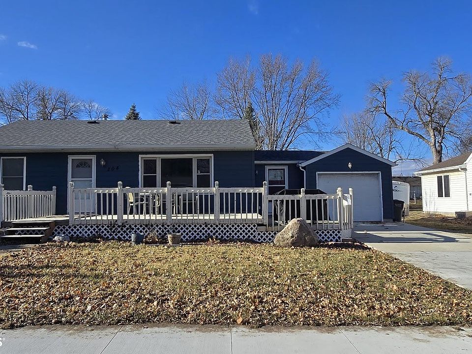 Welcome to this charming ranch style home that has been updated for modern living! The exterior features low-maintenance Composite Siding, a new roof, attached garage, and a convenient shed in the backyard. Step out onto the front deck, perfect for entertaining guests or enjoying your morning coffee. Inside, you'll find a spacious entry area perfect for storing all your winter gear. The kitchen boasts plenty of cabinet space, updated countertops and backsplash, and a sleek gas stove. The main level also features newer flooring, a cozy living room, two bedrooms, and a full bath. Head downstairs to a wide open space with endless possibilities. The basement has a waterproofing system installed w/warranty, and the furnace, AC, and sewer and water lines have all been updated. With all the major updates taken care of, all that's left to do is move in and make this house your home just in time for the holidays!