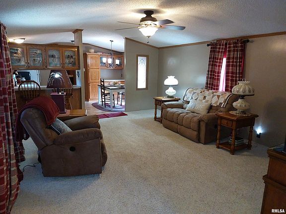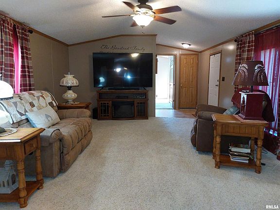 WELL MAINTAINED AND IMMACULATE SPACIOUS MOBILE HOME WITH LARGE CORNER LOT-This 1998 Dutch Housing features open floor plan with all the amenities. Kitchen with appliances, snack bar with seating, dining area with built-in cabinetry. Laundry area with washer/dryer. Amazing master bedroom with walk-in closet and private bathroom with garden tub, shower, and skylight. There is a comfortable second bedroom and second full bathroom. Extras are the new carpeting, Storm/Safe Building, detach double car garage, landscaped, and all sitting on 3 lots with small town country convenience. This is a must see if you are shopping for a mobile home, since this is all set up with the extras.