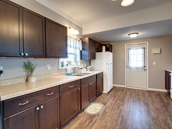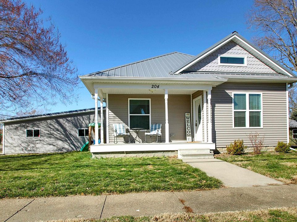 This charming home has a great location with lots of space between houses. This house feels very new as it was extensively renovated, down to the studs, in 2018. These updates include: a new metal roof, siding, drywall throughout, kitchen, appliances, bath, all windows, doors, flooring, fixtures, and deck. The generous garage is attached. The laundry is on the main floor and there is a nice mudroom that is not included in the sq footage. All appliances convey including washer/dryer. Relax on the front porch, or the side deck and patio, and enjoy the sweet country life! The dining table and chairs and the living room couch will convey, if interested. You may be eligible to buy with no down payment if you qualify for a Rural Development Loan.