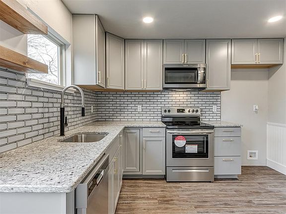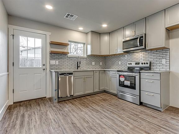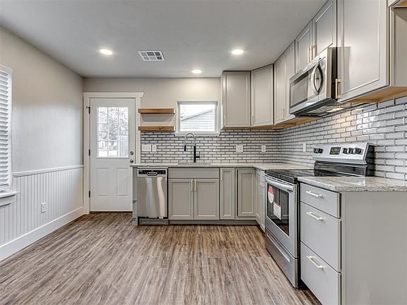 Stunning Renovation in Old Town Blanchard. Cutest 2 bedroom, 1 bath bungalow in Blanchard. This home went through a complete renovation. Home was taken down to the studs, all new electrical, plumbing, New HVAC added, Floors leveled and braced, New R-30 insulation in attic, New R-13 insulation (fiberglass batting) in exterior walls. All new stainless appliances, new flooring, new kitchen and bath cabinets. All permits pulled and passed inspections. This was a labor of love to bring this beautiful home back to life. It is move in ready and waiting for you. Seller/Owner is a licensed real estate agent.
