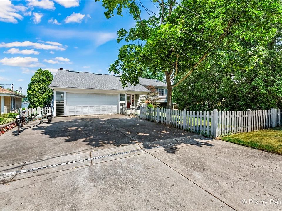 Step up into this lakefront home and immediately enjoy a view of the lake that is BEYOND STUNNING! The main floor offers a kitchen with a breakfast bar, eating area, living room with vaulted ceilings and skylights, a brick fireplace and french doors that lead to a HUGE deck overlooking the water! There are also 3 bedrooms on the main floor. The master bedroom has an adjoining/shared full bathroom and glass doors that lead to the sun-filled 3-season room! The lower level offers a 4th bedroom, and lots of flex space including a family room, mud and laundry room and a spacious rec room with an additional kitchen! This spacious rec room is lined with glass doors for a walk-out to your lakeview backyard oasis and your own private pier. A brand new seawall was even installed in 2020. You have access to 5 local beaches and there are NO HOA FEES! The 2-car attached garage has an upper-level storage area and the wide driveway will accommodate boat storage. This home has been very well maintained, ready for it's next owner to enjoy everyday lake life!