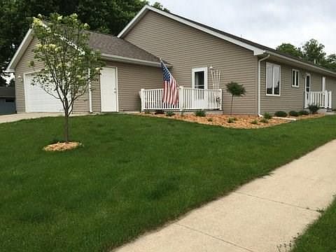 This lovely bi-attached home in a quiet Panora neighborhood can make your dream of "easy living" come true! Located on a professionally landscaped corner lot, picture yourself enjoying the private deck or walking to town or the Raccoon Valley Bike Trail. The smart and accessible floor plan with nearly 1,500 sq ft includes a master suite with ¾ bath, full-sized washer/dryer in a mudroom w/ more storage, second bath (w/new walk in shower) AND a flexible second BR to be your den, office or hobby room. The bright and sunny eat-in kitchen has lots of counters/cabinets and opens to a spacious living room. Plus, there is an oversized two-stall garage ready for your workbench, gardening gear or storage. Even the exterior makes life easier with no maintenance siding/gutter guards. This meticulously-maintained home has fresh paint and neutral colors - it just needs your personal touches to make it your "easy living" dream home! Bonus! A one-year home warranty is included!