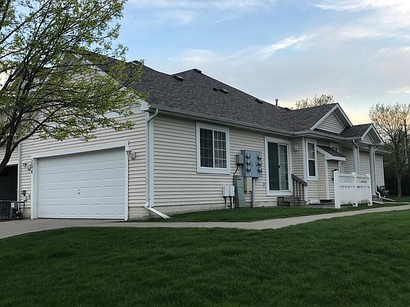 Ranch town home full basement w/egress window 2 car attached garage . Gas fireplace in living room open to kitchen. 1st floor laundry. 2 bedrooms 1 bath on main floor. Corner unit facing green space and trees.