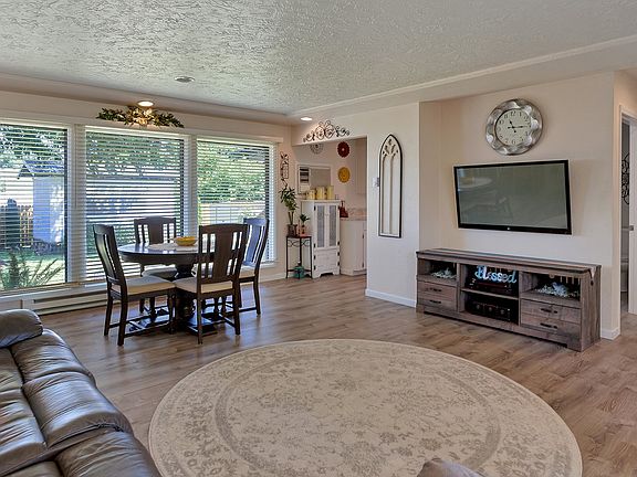 Welcome to this delightful 2-bedroom, 1-bath ranch nestled in the heart of Canby. The home boasts an open dining and living room combo, with floor-to-ceiling windows and laminate flooring that flows seamlessly throughout. The spacious master bedroom includes a walk-in closet. A second bedroom offers flexibility for guests, a home office, or additional living space to suit your needs. Step outside to a serene, covered deck, ideal for entertaining or relaxing while overlooking the level landscaped backyard. Additional highlights include an oversized driveway with room for RV parking, wide entry doors for accessibility, newer roof, upgraded electrical, out buildings for storage, and easy access to local amenities, parks, and schools. Don't miss out on the opportunity to make this charming home yours.