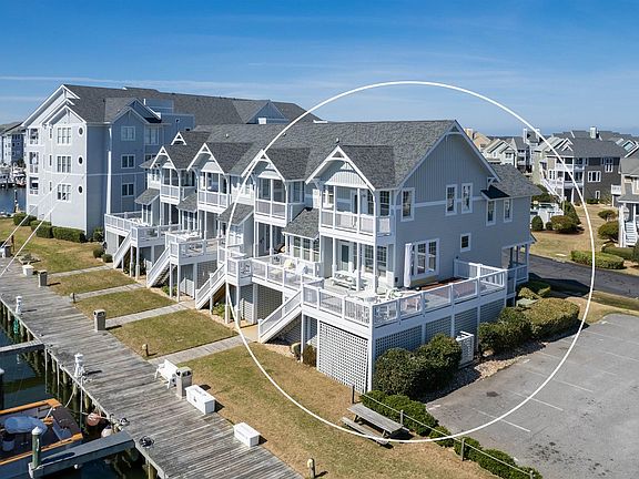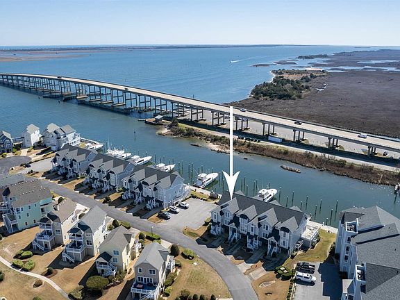 Stunning waterfront TOWNHOME with views of the Roanoke Sound and Pirate's Cove Marina. This end unit townhome is one of the most sought-after locations in Pirate's Cove with steps off the deck down to the dock. Designed with an open floorplan, this 4BR, 3BA unit offers floor-to-ceiling windows, a spacious living/dining room and a kitchen perfect for entertaining or just relaxing while watching the boats return from their day of Off-Shore Fishing. The roomy kitchen features STAINLESS appliances, an eat on bar, granite countertops and under-counter lighting. Sold FURNISHED, additional interior features include cathedral ceilings, master bedroom with ensuite bath and private balcony, three guest rooms, laundry room, gas fireplace, and a huge deck with HOT TUB. Exterior features include multiple storage closets with additional enclosed space under the deck, an outdoor shower, dry entry, and a privacy wall. Located in the Gulfstream subdivision of Pirate's Cove, community amenities include: outdoor tennis, two pools, clubhouse, fitness center, playground, miles of perimeter docks, and sound access. Located only steps to BlueWater Raw Bar and Grill, this unit offers location value and close proximity to marina activities. Staging by Site to Sea.