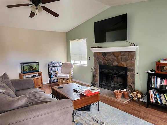 Fresh exterior paint, a newer roof, parking in front and behind fence for an RV, a storage shed, low maintenance landscaping in the front. Laminate flooring throughout, even comes with a newer basket ball hoop. Very little traffic on the street. Close to Dayton Valley Golf Course.