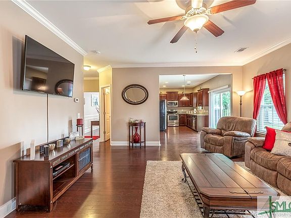 Move-in ready with a transferable 2-10 home builders warranty, this attractive home sits in gated Mosswood Plantation at Berwick, on a freshly landscaped lot with mature trees. The homes upgraded brick skirting and southern front porch help round out the beautiful curb appeal. The interior boasts quality moldings and hardwood floors throughout the lower level, with a kitchen that opens to the living room and features expansive granite, dark cabinets and stainless appliances. The upper level provides spacious bedrooms, tiled laundry, and tiled guest bath with granite. The master is highlighted by vaulted ceilings and a walk in closet, while the master bath offers tile, granite and a separate shower. Other extras in the home include the flex space for an office, play room or formal living room, as well as a formal dining room with crown and wainscoting. Finally, the privacy fenced backyard with storage shed is great for entertaining with it's fire pit and horse shoe pits.