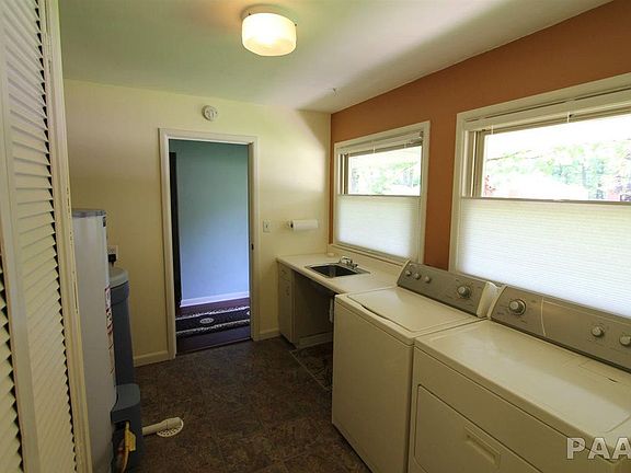 Mid-Century Modern Gem conveniently located near I-74 and Morton. Unique floor plan with the living room looking out over the covered deck and private back yard. It also has a stone fireplace with gas logs. Cork flooring throughout the main area with carpeting in the bedrooms. New in 2017: Roof, guttering, gutter guards, refrigerator, stove and hood fan.