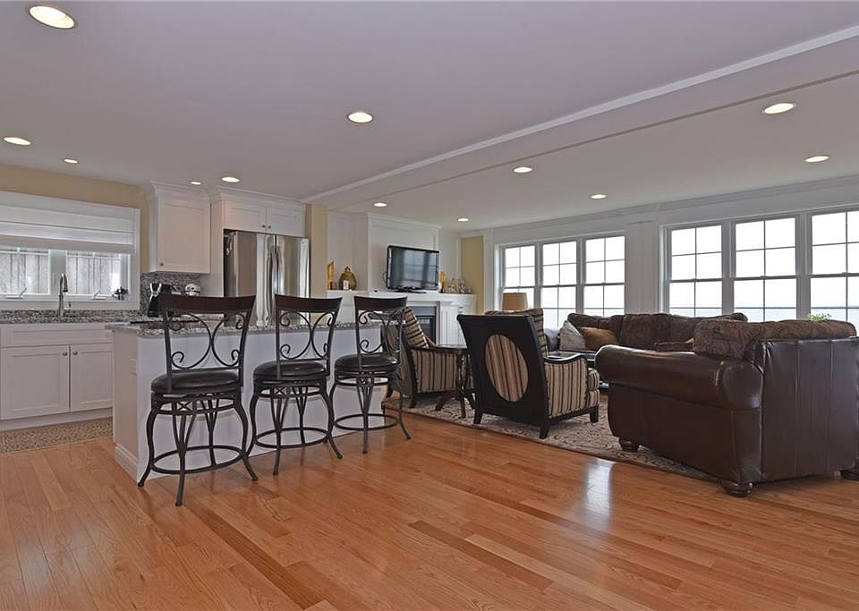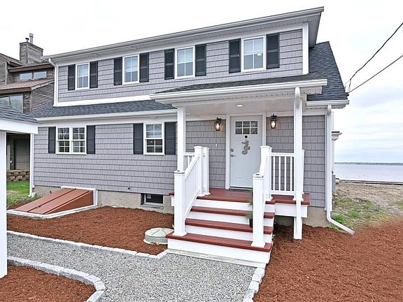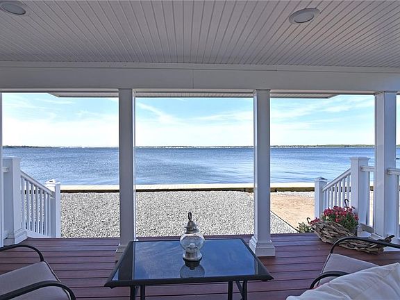 WATERFRONT! Enjoy expansive water views from almost every room in this completely renovated waterfront home, as well as from balcony and deck built with zurich waterproof decking. You will find only the highest quality materials throughout from the granite counters/backsplash in the gourmet kitchen, to all kohler fixtures in both kitchen and bathrooms. Gleaming hardwood floors in main living areas, gas zero clearance fireplace, beautiful moldings and details. Each bathroom features marble herringbone floors and cherry vanities with granite countertops. The oversized master bath boasts a double vanity with a 7 foot tub. The second floor offers a second living area with a slider to balcony/deck with more breathtaking views of Narragansett Bay. The cedar vinyl shingles are low maintenance and the combination of insulation and high efficiency heating system keeps your heating and cooling costs shockingly low! Sea wall was just re-built, there is one mooring and property is approved for a second mooring!