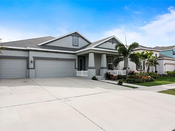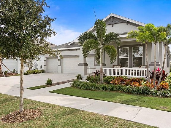 Too good to miss! Beautiful home in the GATED ADMIRAL POINTE section of MIRABAY! Featuring a community room, pool and access to all the MiraBay amenities. This home glows with abundant natural light. Many upgraded touches - all tile flooring, quartz countertops & brushed nickel fixtures in kitchen & bathrooms, recessed lights in main living area, faux wood blinds & custom shades, ceiling fans in most rooms. The kitchen features 42 in wood cabinets, tile back splash, SS appliances including an gas range, dishwasher & French door refrigerator, walk-in pantry, HUGE CENTER ISLAND & special bar/niche area. The huge master suite includes EXTRA LARGE WALK IN CLOSETS, double vanities, a garden tub for soaking & a large walk-in shower. The triple split layout allows for extra privacy, including one bedroom with its own en-suite bathroom. FRENCH DOORS on the front bedroom make it a perfect office /den. A covered, SCREENED BACK LANAI overlooking CONSERVATION area & POND. Many great features including epoxy garage floor, Wi-Fi THERMOSTAT, upgraded landscaping, RING DOORBELL, 10 ft ceilings & 11 ft in living room & master, tankless gas water heater, IN-WALL PEST SYSTEM with transferrable termite warranty, washer/dryer included & much more!! MiraBay is a gated waterfront community offering resort style amenities including two clubhouses & pools, fitness center, use of kayaks/canoes, spa services, cafe, tennis/basketball courts, parks/playgrounds, community events and more!