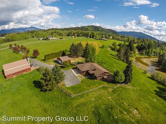 A rare opportunity to own this amazing ranch! This beautiful 3,330 sq ft custom home sits above the Boyer waterway and offers gorgeous Schweitzer Mountain views. Fall in love with the unique finishes that include a floor to ceiling rock fireplace, wood windows, doors/trim, custom kitchen, pantry, large laundry room and walk-out access to large entertaining deck. Dining room is open to kitchen and has large windows to take advantage of peaceful waterway views. Venturing downstairs, opens to a custom glass sun room with spa and walk-out access to the lawn and fruit trees. Ranch also includes a 3-car garage, an additional 4 door classic Architecture barn with tack room and a additional 3 door shop/horse stalls. The lush pastures have irrigation lines underground w/ quick connects. The property is littered with all species of beautiful trees including fruit trees and maples. Continue the dream of a Family Estate as the property features 3 lots.