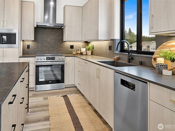 Welcome to River-Walk, a distinctive community in NW WA where design, comfort & lifestyle come together. With open spaces, quality finishes, & a location that connects seamlessly to Lynden’s charming downtown. Just a short stroll or bike ride away, you’ll find quaint restaurants, local shops, & everyday essentials. Lot 44 features 1,428 sq. ft. of thoughtfully designed living space with 2 bedrooms and 2.5 bathrooms. Both bedrooms include ensuite baths with sleek, solid-surface showers for a modern look and low-maintenance ease. The gourmet kitchen stands out with quartz countertops, full-height backsplash, and island with waterfall drops perfect for everyday living and entertaining. Don’t miss out, there are only 2 of this floor plan left!