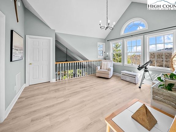 This furnished, turnkey mountain retreat is ideally in the heart of Seven Devils, between Boone and Banner Elk. Just minutes from Hawksnest Snow Tubing and Ziplining, hiking trails and local attractions, the property offers a peaceful escape and strong short-term rental potential. The open-concept layout includes vaulted ceilings in the great room, a spacious dining area filled with natural light, and a modern kitchen with updated appliances and fixtures. With three bedrooms and two large living areas, the home offers flexible options, use the main-level bedroom or the generous lower-level suite as your primary or bonus space. Two covered decks provide long-range mountain views year-round, ideal for relaxing or entertaining. A sunlit loft offers space for reading, yoga, a playroom or home office. Recent updates include a widened and paved driveway, luxury vinyl plank flooring throughout, refreshed kitchen and baths, upgraded lighting and hardware, and a new mini-split system on the lower level. Additional features such as a game room, outdoor firepit, basketball goal and new furnishings enhance the home’s comfort and rental appeal. Designed for lifestyle and income, this move-in-ready home presents a rare opportunity in one of the High Country’s desirable locations. Foosball table is the only exclusion.