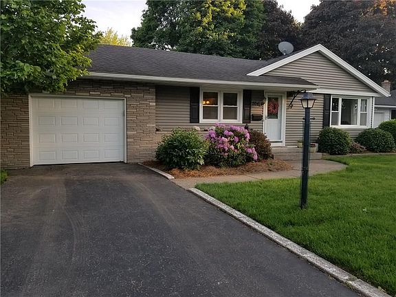 WOW!!! COMPLETELY RE-DONE Ranch inside and out over the last 12 years. Siding, windows, roof, hardwood floors, electrical/wiring with hard wired smoke detectors, furnace, A/C, landscaping. Gorgeous custom kitchen with Granite counter top, built in water purifier, cabinets with pull out drawers. Pocket doors and all appliances included. Bathroom with corian counter top, tiled shower and Jacuzzi tub. Must see the amazing heated finished basement/man cave with glass block windows. Tons of storage with built ins. Plus bonus room. Entire home freshly painted. 3 houses from the Greece border. Garbage pick up included in taxes. Alarm service. Just move in and enjoy this stunning 3 bedroom 1.5 bath home. Any/all offers with be reviewed Monday, June 4th at 5pm. Include pre-approvals/proof of funds with all offers. Washer, Dryer, Baby camera, wall mounted TV's, projector and projector screen NOT included.