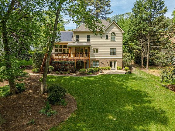 Nestled in the highly sought-after Cambridge at Regency, this custom-built home exudes charm and sophistication and is a must-see! The main level greets you with an open floor plan & gleaming hardwood floors, providing a warm & inviting atmosphere. The stunning brick fireplace is sure to be the focal point of the living area, perfect for cozying up during those chilly nights.Step outside & take in the beauty of the half-acre lot with mature trees & impeccable landscaping from the comfort of your covered porch. Imagine spending lazy afternoons relaxing & enjoying the serene surroundings. This basement home has everything you need for comfortable living. Downstairs, you will find ample space for entertainment, including a home theater & pool table area, work space, flex room, & more. As an added bonus, this home is perfect for environmentally conscious buyers who will appreciate the energy efficiency of solar panels & 240 volt electric outlet. Neighborhood amenities include 2 pools, tennis, & playground. Close to Koka Booth, Whole Foods, shopping, restaurants, & easy access to major highways. Prepare to fall in love!