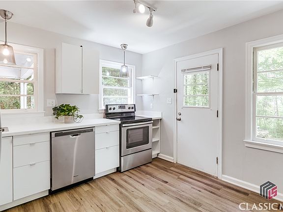 Here it is! An Affordable, and charming, Athens home that also has the option to rent the basement apartment to further reduce one’s mortgage payment, and offset the challenges of these inflationary times. A Classic 1950s solid brick home, there are 3 bedrooms on the main level, an arched opening opening connects the living and dining rooms, there’s a stylish updated kitchen, a wonderful retro, green tile bath with original plumbing fixtures. Downstairs, there’s a nice 1/1 apartment, with a 2nd stylish kitchen, open to a large common living area. The main level and basement apartment are connected by interior stairs, though each has separate exterior access. Additionally, there’s perhaps an additional 500’ unfinished space in basement which has exterior/interior access that provides a great flex space; it could be used as a workshop, art, studio, storage, or possibly could be finished as additional living area. Further, there’s an attached carport, with French door side entry. This is a .57 acre, lush green lot, with an open expanse of back yard, privately screened on the borders by mature hardwoods and with a wide creek wrapping the rear boundary of property; this has a sanctuary feel, and could be a gardener’s dream for landscaping. Located on a quiet residential street, it’s within walk-bike distance of public schools, County bus stop, and conveniently near grocery stores, restaurants, retail, the UGA Veterinary School, and is just minutes from Downtown Athens and UGA’s main campus. Imagine….just imagine.