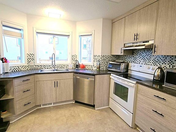 Welcome to Your Dream Home in Strathaven Court! Step into this beautifully updated 2-storey townhouse, featuring 3 bedrooms and 1.5 bathrooms in a spacious layout perfect for modern living. Recently painted throughout—including ceilings, walls, and trims—this home feels fresh, inviting, and ready for its new owners to make it their home. Recent upgrades within the last two years ensure that this home is move-in ready. The fully renovated kitchen is a standout, boasting custom-built cabinetry with soft-close cupboards and drawers, a generous pantry, and sleek Energy Star appliances, including a dishwasher, refrigerator, and a full-size washer and dryer. A second refrigerator in the basement adds convenience for extra groceries or beverages. With updates like a New Furnace and New Hot Water Tank, you'll enjoy modern efficiency and peace of mind. The brand New Windows, installed by the board, upgrade the property's value as does the New Roofing installation which is currently in process, with no outstanding or upcoming special assessments. The renovated bathrooms feature dual-flush toilets, quartz countertops, updated stylish vanities and fixtures. Luxury vinyl impact tiles flow throughout the main level, complemented by luxury vinyl plank flooring in the upstairs hallway and the main bathroom, all of which add both beauty and durability. Enjoy the convenience and the appealing design of Alpine Zebra Blinds Shades with PowerWands. When you open them, the layers gently align to light through the sheer material. Alternatively, the closed position provides visual privacy or room darkening function. The PowerWands lift and lower the blinds with the touch of a button without having to worry about keeping track of a remote! An open-concept living space is brightened by modern LED lighting and a ceiling fan, creating a warm and inviting atmosphere. The full unfinished basement offers endless possibilities, whether you're looking for additional storage or a customizable living area. Located in a well-maintained, pet-friendly complex, this property offers the added convenience of an on-site daycare and proximity to schools, shopping, Alberta Health Services, and outdoor recreation areas. It's the perfect choice for first-time buyers, young families, or savvy investors. Immediate possession available! Schedule your viewing today and make Strathaven Court your new address!
